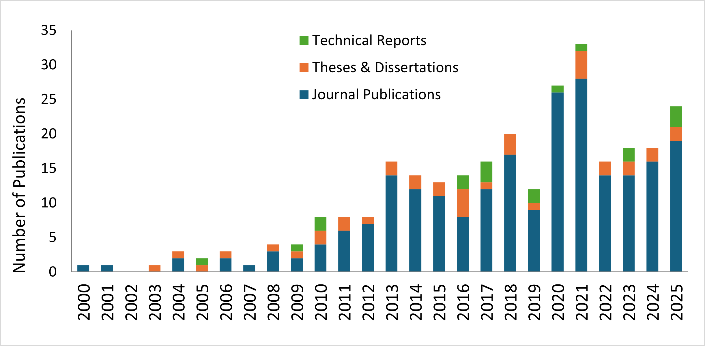 Southwell, M. W., Schindler, C., & Ramirez, F. (2025). Modeling dissolved organic carbon in an estuary using optical properties and salinity. Water, 17, 3133. View here.